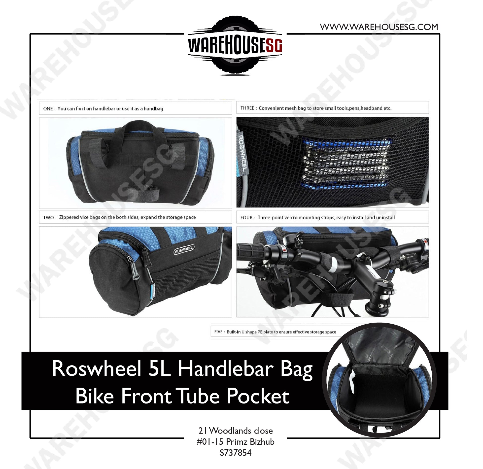 - Package Contents: 1 x Roswheel 5L Bike Handlebar Bag Bicycle Front Tube Pocket Shoulder Pack Riding Cycling Supplies, 1 x Strap